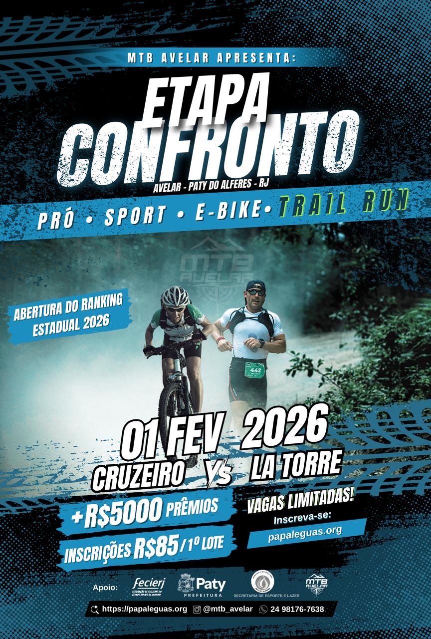 Apoio: Prefeitura Municipal de Paty do alferes, Secretaria de Esportes e Lazer. Evento: 3° CIRCUITO MTBAVELAR– ETAPA CONFRONTO – 2026