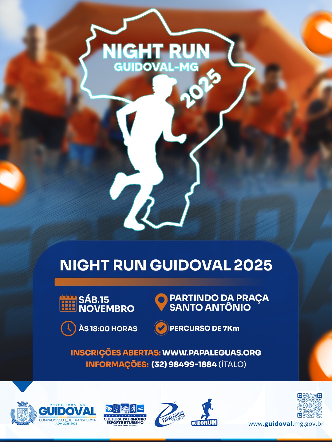 A Night Run Guidoval 2025 chega com o objetivo de promover saúde, lazer e integração entre atletas e a comunidade, iluminando as ruas da nossa cidade em uma corrida cheia de emoção e boas vibrações.